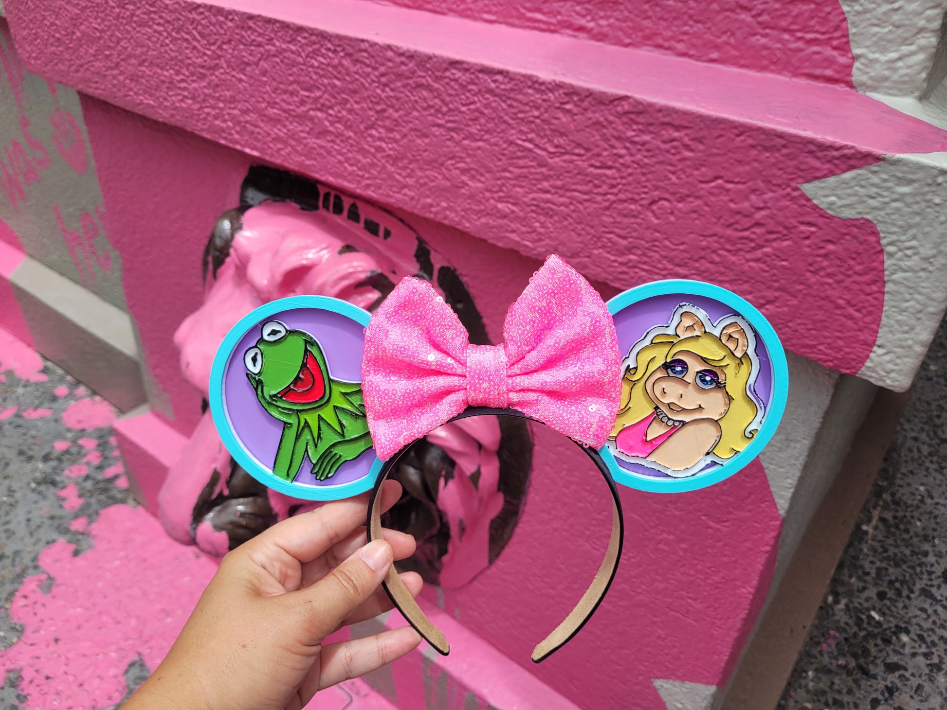 Retro Kermit and Piggy Muppet Vision Forever Ears, 3D Printed Miss Piggy Muppets Mouse Ears